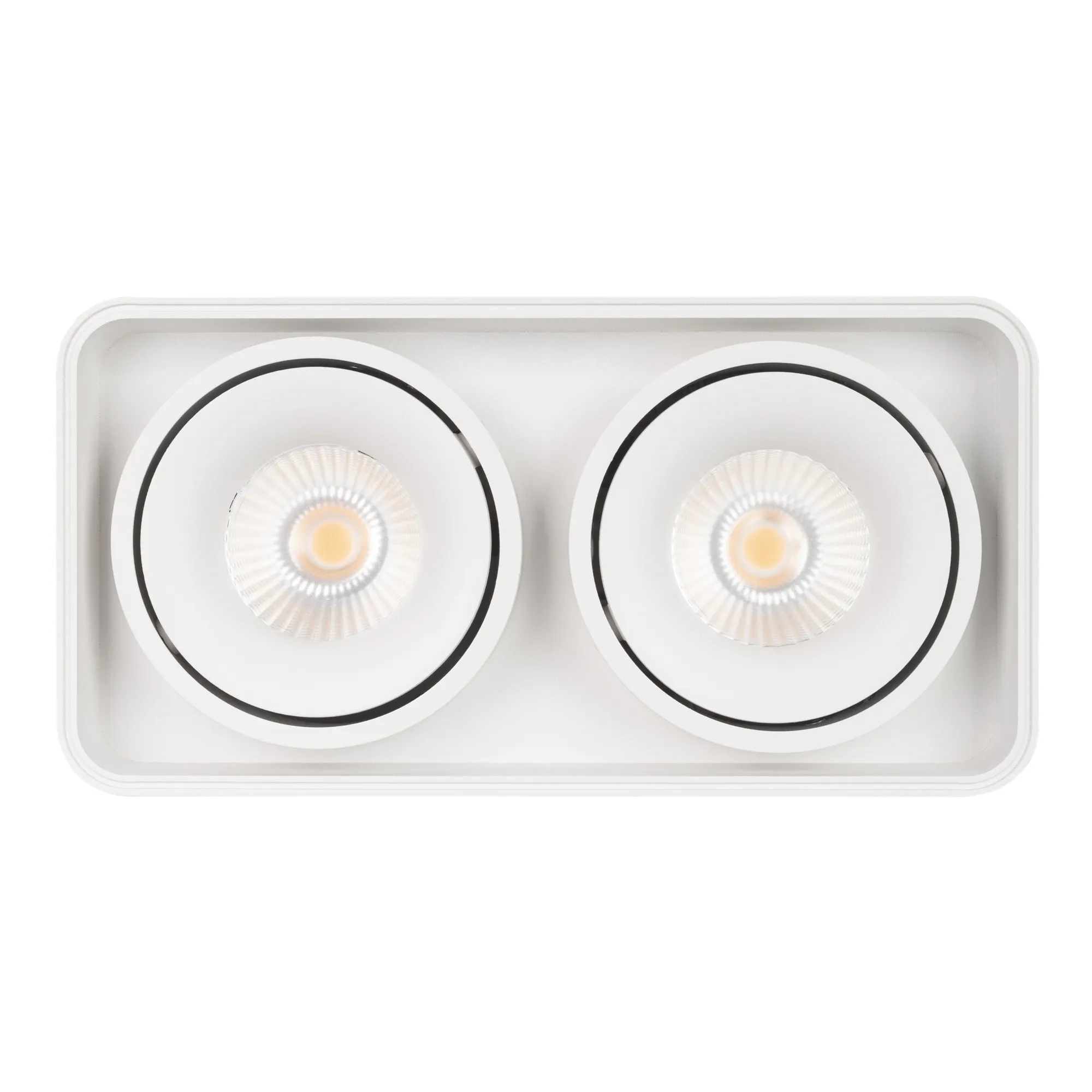 Накладной интерьерный светильник. Мощность 16 Вт, св. поток 1490 лм, 98 лм/Вт, дневной 4000 K, CRI>90, угол 45°, регулируемое направление луча 30°, напряжение питания 230 В. Белый прямоугольный корпус из алюминия, степень защиты IP20. Размер: длина 195 мм, ширина 100 мм, высота 100 мм. Монтаж накладной. Драйвер 26-40 В, 400 мА, пульсация <5%.