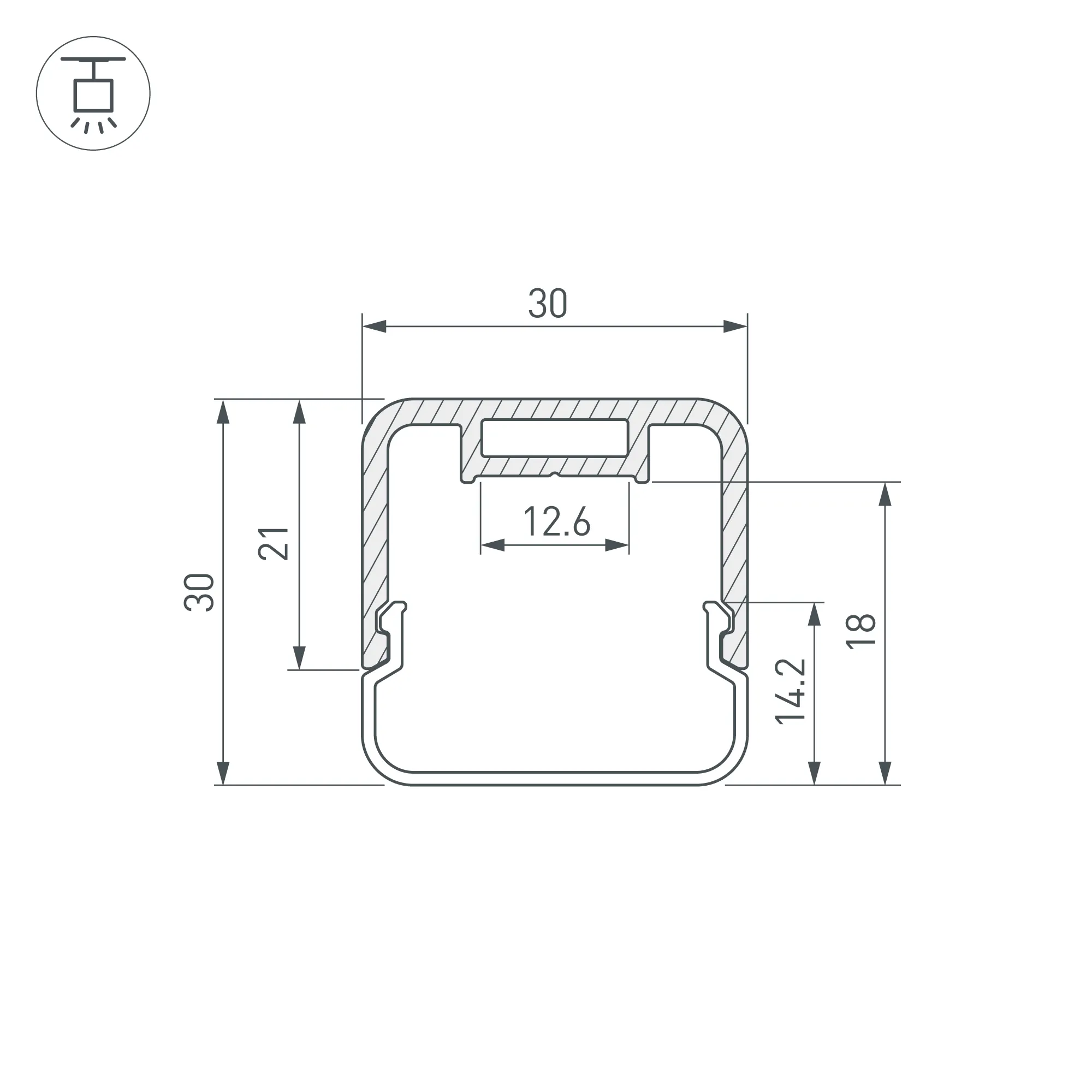 Комплект профиля с экраном и заглушками. Подвесной профиль со скругленными углами и объемным матовыми экраном из поликарбоната идеально подходит для основного освещения и создания дизайнерских светильников. Цвет - черный RAL9004 (порошковая окраска). Габаритные размеры (L×W×H): 2000x30x30 мм. Ширина площадки для ленты 12,6 мм. Аксессуары приобретаются дополнительно. Цена за комплект: профиль - 2 м, экран - 2 м, глухая заглушка - 2 шт.