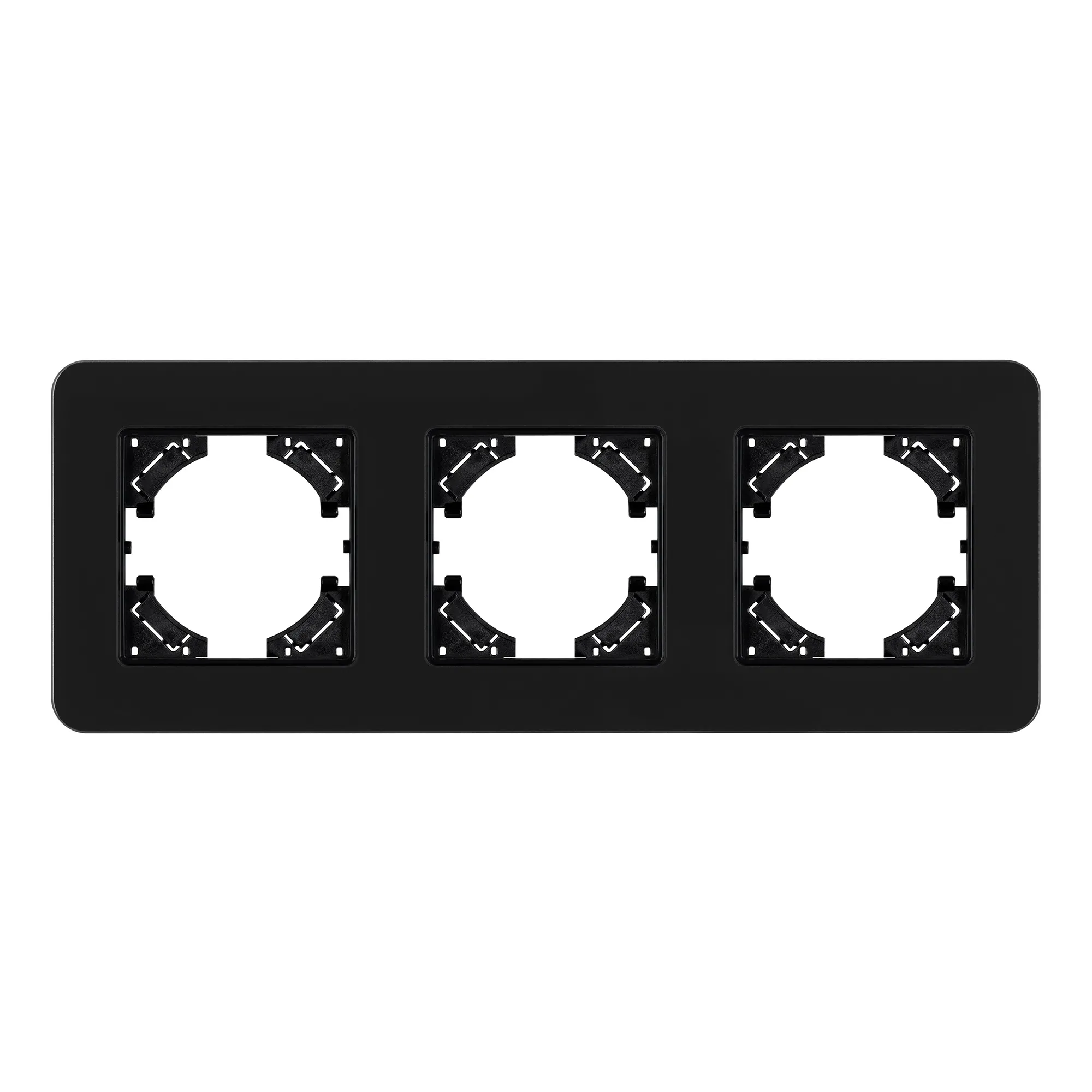 Рамка стеклянная на 3 поста, под встраиваемый механизм. Цвет - черный с Soft-Touch покрытием. Уровень герметичности IP20. Ориентация монтажа - горизонтальная (основным ориентиром служат посадочные выступы для накладки механизма). Габаритные размеры: длина 228 мм, ширина 86 мм, высота 7 мм. Гарантийный срок 12 мес.