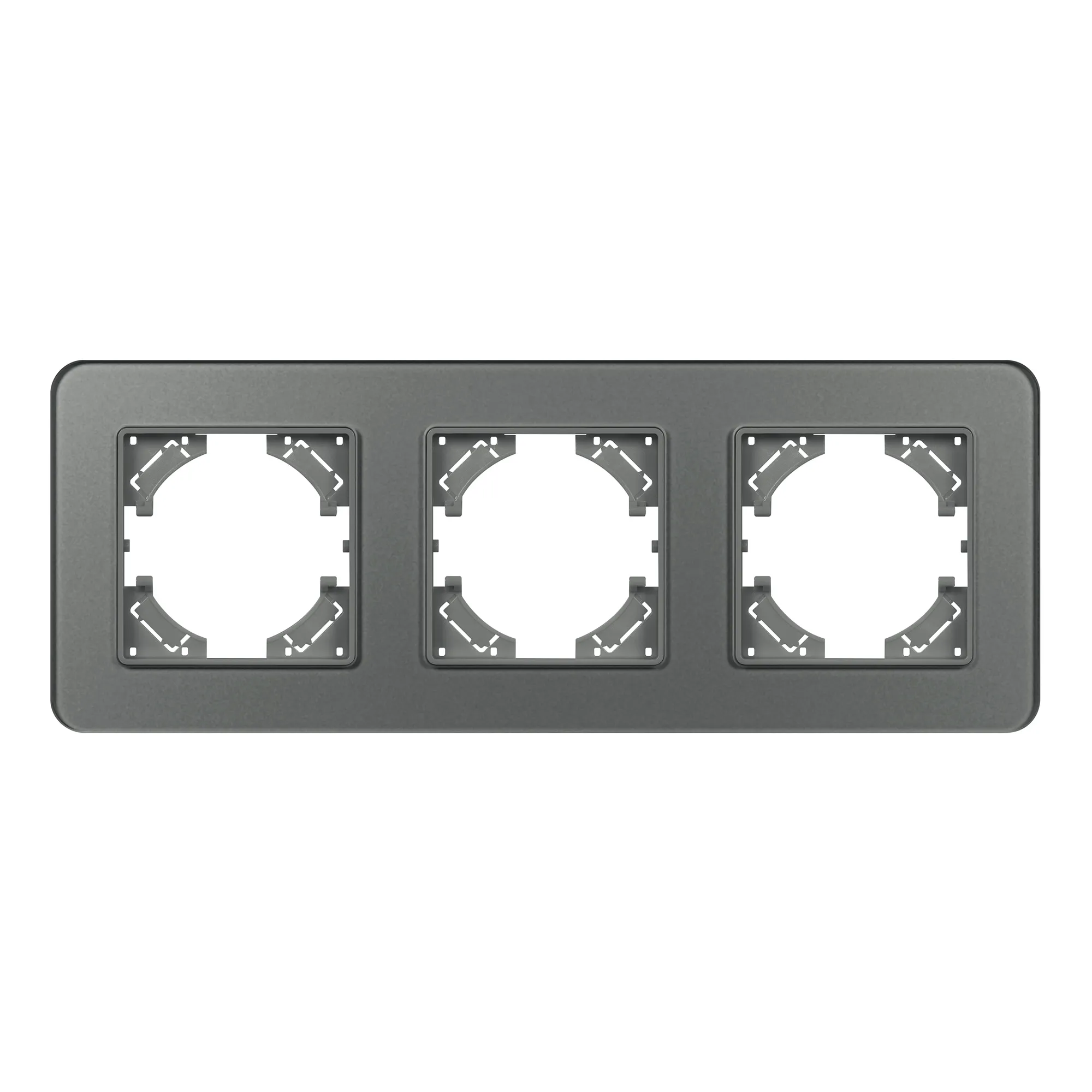 Рамка стеклянная на 3 поста, под встраиваемый механизм. Цвет - серый с Soft-Touch покрытием. Уровень герметичности IP20. Ориентация монтажа - горизонтальная (основным ориентиром служат посадочные выступы для накладки механизма). Габаритные размеры: длина 228 мм, ширина 86 мм, высота 7 мм. Гарантийный срок 12 мес.