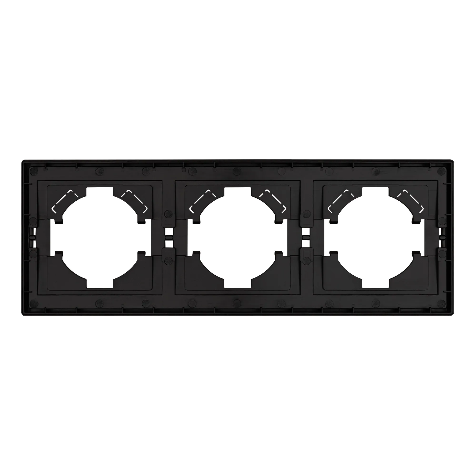 Рамка пластиковая на 3 поста, под встраиваемый механизм. Цвет - матовый черный, с Soft-Touch покрытием. Уровень герметичности IP20. Ориентация монтажа горизонтальная.