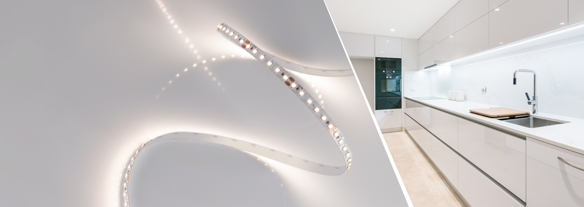 Сфера применения новых лент обширна: декоративная подсветка интерьера, потолочных ниш, подсветка рабочих зон кухни, мебели, использование в рекламных конструкциях и при оформлении витрин.